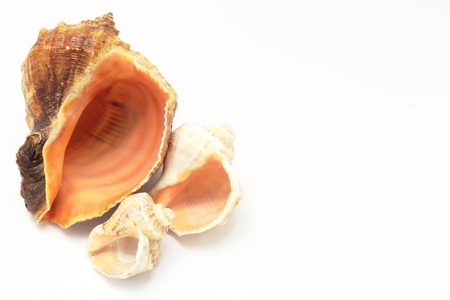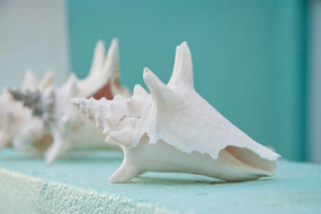 Old weathered conch shell background. Tropical sea conch wallpaper