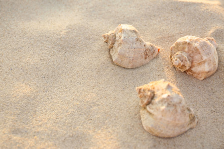 Beautiful tropical shells on the beach in Punta Cana, La Altagracia, Dominican Republic. Close-up