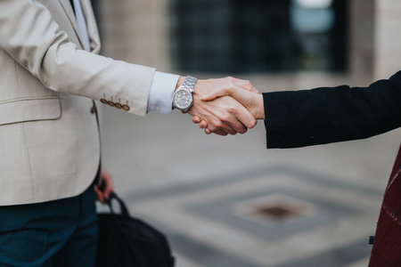 Business Professionals Engaging in a Handshake While Collaborating Outdoors