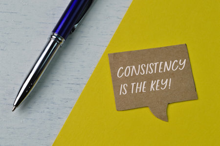 colored paper with the words CONSISTENCY IS KEY. consistent self-education concept