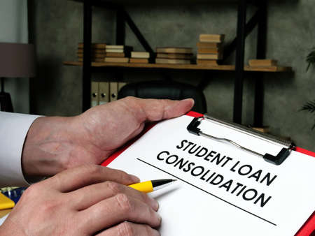 Man fills out the form for student loan consolidation.