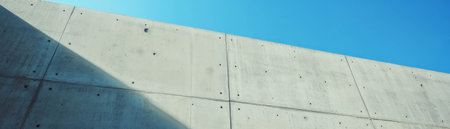 AI Generated. Modern concrete wall under a clear blue sky with long shadows in an outdoor setting