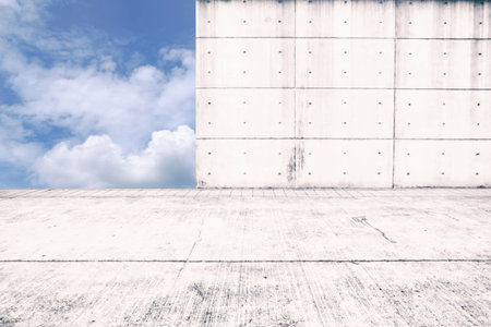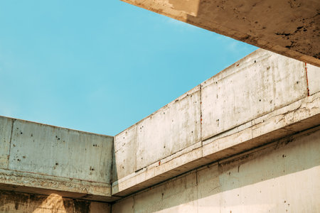 Architectural concrete structure creates a calming minimalist scene with blue sky background Perfect for design and urban concepts.