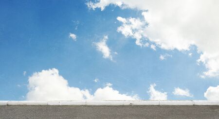 Empty concrete floor on the rooftop with blue sky and white clouds background