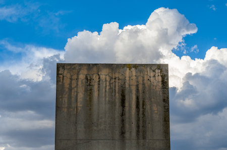 Concrete structure with blue sky in the background and white cloud in the sky. Generative AI.