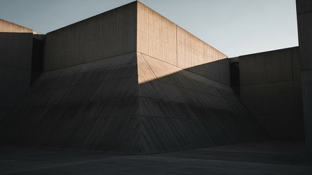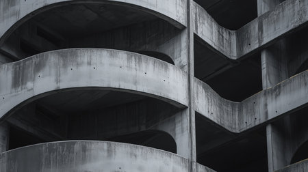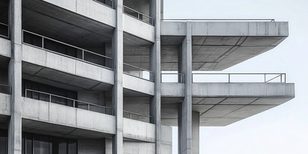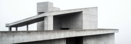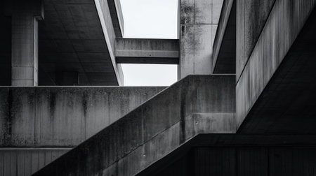 Monochrome Concrete Architecture Featuring Modernist Design and Industrial Urban Aesthetics