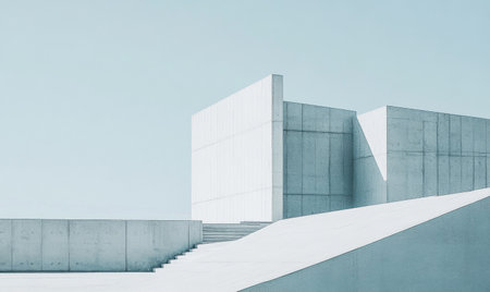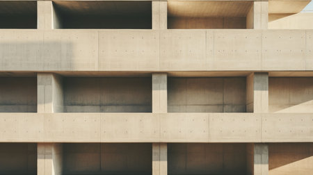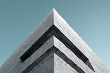 Geometric clean concrete facade with minimal design, representing brutalist and modern architectural style in urban environments.