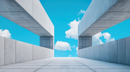 Abstract Perspective of Concrete Walls and Open Sky, Minimalist Architektur, Urban Geometry