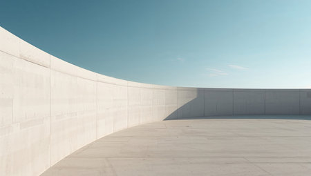 The smooth, clean lines of a modern architectural structure against a clear sky, the starkness serving as a canvas for the interplay of form and light.