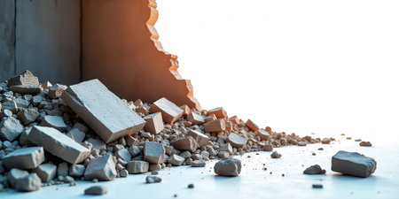Broken Brick Wall Demolition Debris Construction Rubble Destruction Disaster Scene