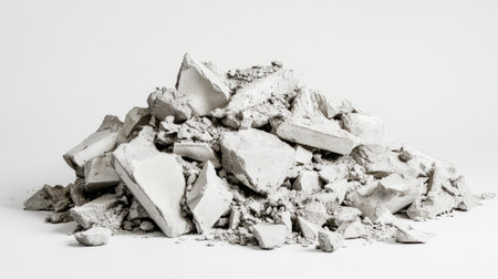 A captivating arrangement of broken plaster pieces displaying various shapes and textures, suitable for creative projects, design applications, or renovations emphasizing modern aesthetics.