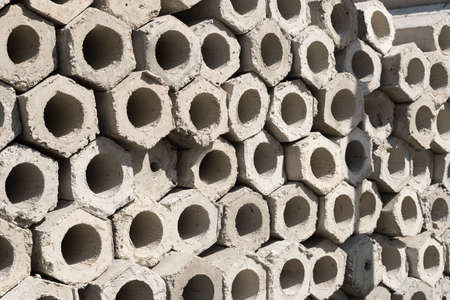Concrete sewer pipes on building construction site, architecture and industry concept
