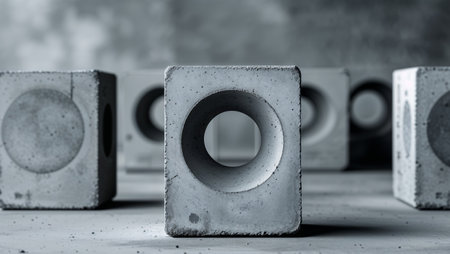 AI Generated. A series of concrete blocks with a square hole in the middle