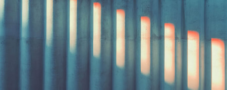 Vertical ribbed concrete wall texture with sunlit patterns for architectural backgrounds
