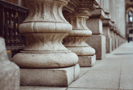 Row of large stone pillars on an urban building