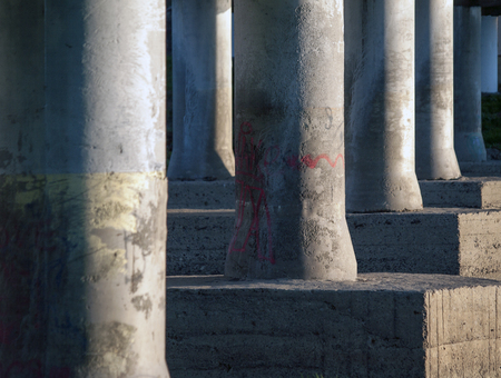 background of concrete pillars under the bridge