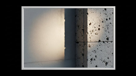 Shadow showing abstract geometric concrete frame with shadows and a central white space keywords: concrete...