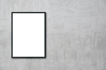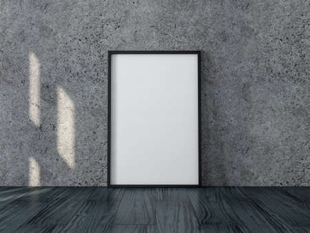 Blank picture frame mockup hanging on concrete wall. 3d rendering