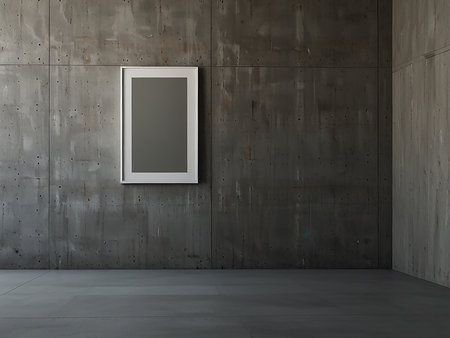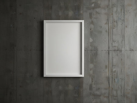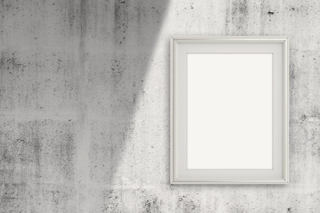 Blank picture frame hanging on concrete wall. 3d render illustration
