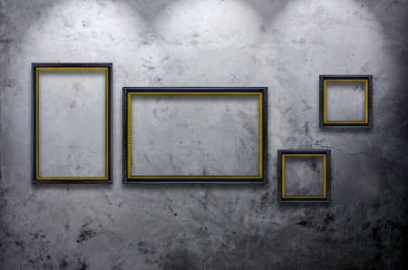 Collection of picture frames for paintings or photographs on the wall. Picture frames on Cement wall.