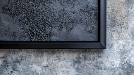A close-up of an elegant black square frame on a textured wall, with room for design mockups and copy space.