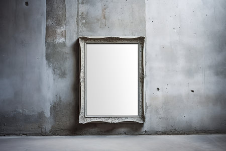 An elegant white ornate frame stands against a textured cracked wall, perfect for showcasing art or photography. Ideal for interior design inspiration.