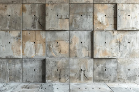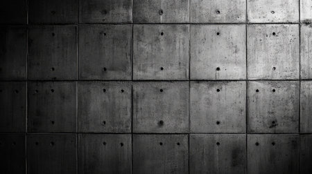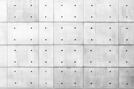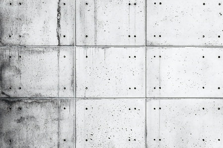 Concrete wall panel industrial architecture texture with symmetrical pattern grid design modern urban surface background.