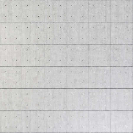A smooth, gray concrete wall featuring a grid of rectangular panels, showcasing a minimalist and industrial aesthetic.