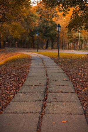 vertical photography of golden autumn track in park with orange colors October season