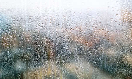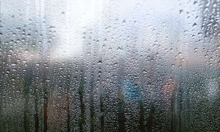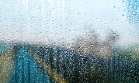 Condensation on the window with a blurred background. Rain drops on the window.