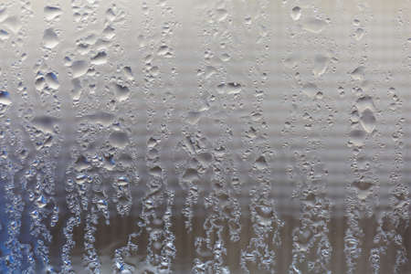 Glistening drops on the glass. Silvery drops in the bathroom. Transparent fog on the glass in drops, and the pattern of them.