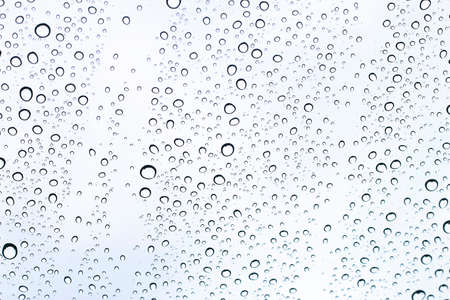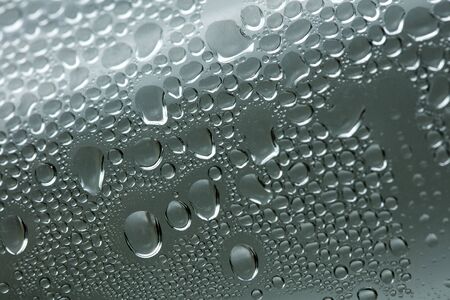 Close up of water drops on a glass surface. Abstract background.
