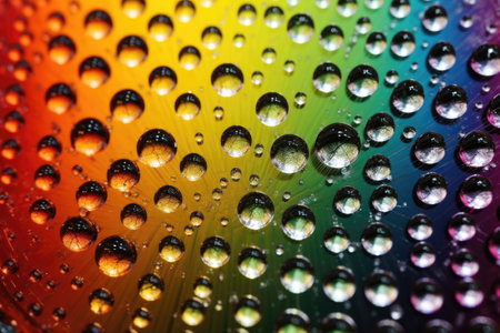 macro view of water droplets on a cd creating a rainbow effect, created with generative ai