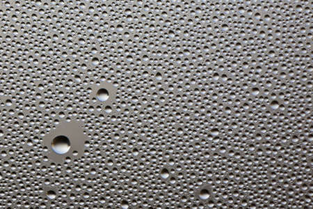 Abstract background with water drops on metal surface close up