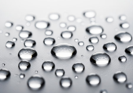 A close up of water droplets on a surface. Generative AI image.