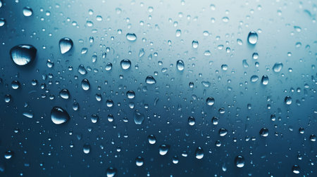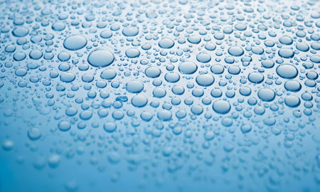 Blue surface covered in droplets of water. Generative AI