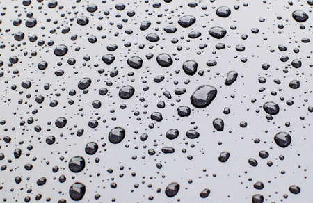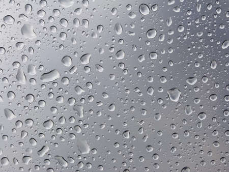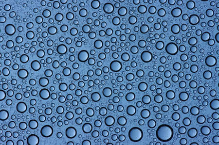 Abstract picture of raindrops. Water drops on a gray-blue background.