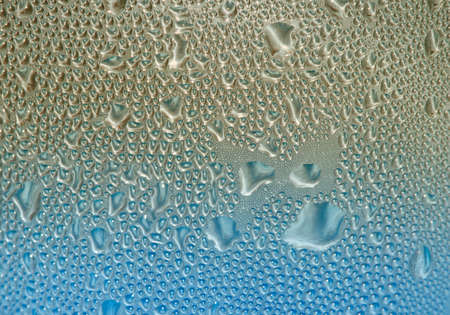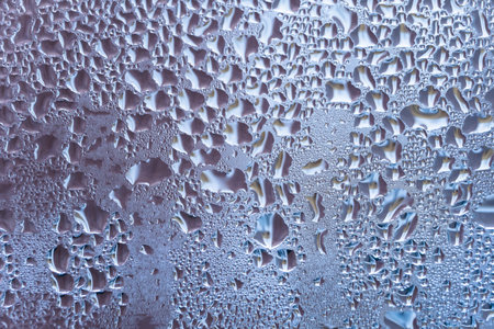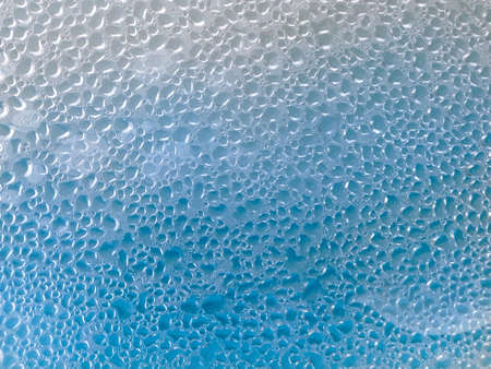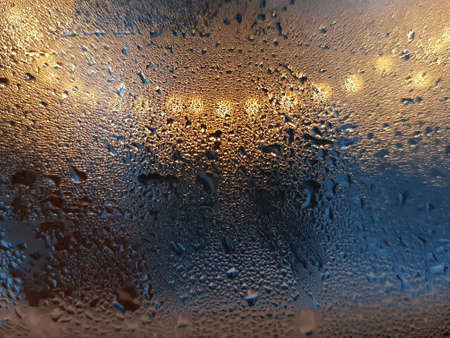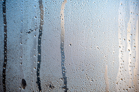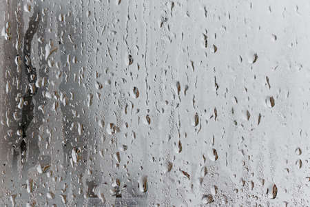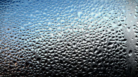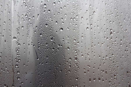 Condensation on the clear glass window, Water drops, Rain. Window glass with high air humidity. Background of natural water condensation