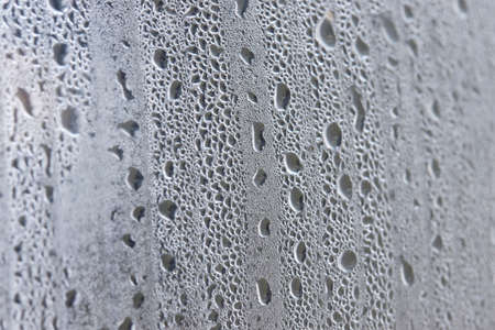 Dripping Condensation, Water Drops Background Rain drop Condensation Texture. Close up for misted glass with droplets of water draining down