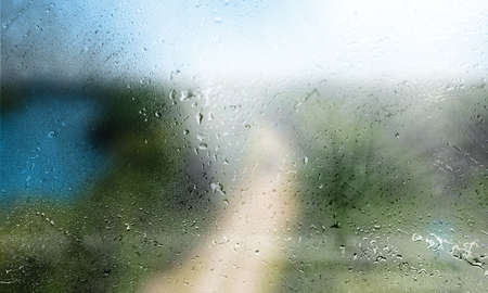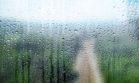 Rain drops on the glass, blurred background with copy space for your text.