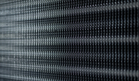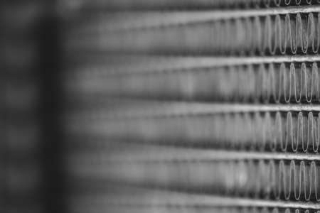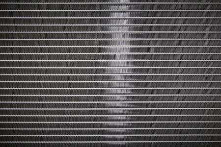 Monochrome background image of automotive radiator close up. Silver background from many duplicate lines.