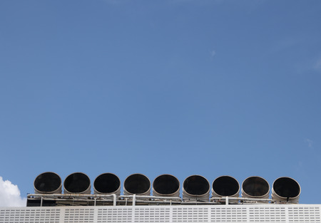 More Air conditioning system (Coil air heater) assembled on side of a building.Thailand