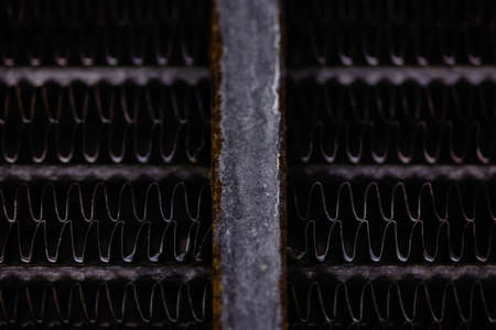 Radiator of water cooling of the engine of internal combustion with close up, automobile spare part.