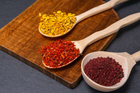 three spoons with spicy powder table. Resolution and high quality beautiful photo