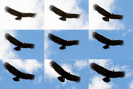 Andean condor in flight againt cloudy sky. Sequence shot in less than 1 second. Shot with Canon 1D Mark IV and converted from RAW.