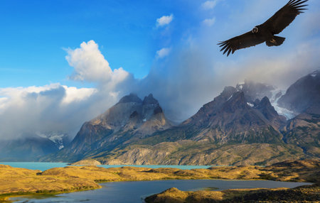 Beautiful mountain landscapes in Torres Del Paine National Park, Chile. World famous hiking region.