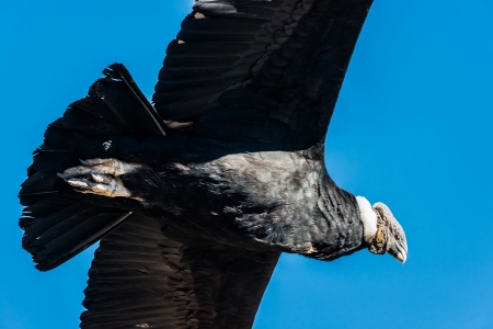 Andean condor flying in the Colca Canyon in the peruvian Andes at Arequipa Peru.