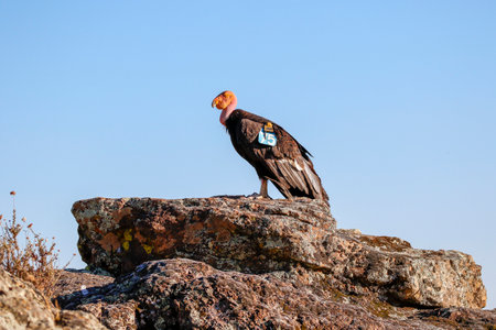 The California Condor on the stone surface under sunlight near San Lucas, California