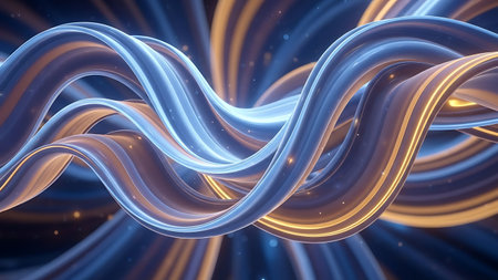 A glowing abstract featuring blue and orange waves with dynamic movement and light effects, creating a sense of energy and motion. The showcases a creative and artistic Clear details and vibrant colors enhance visual appeal.