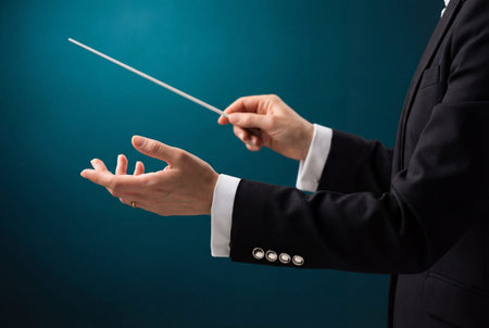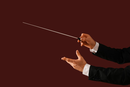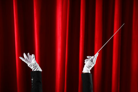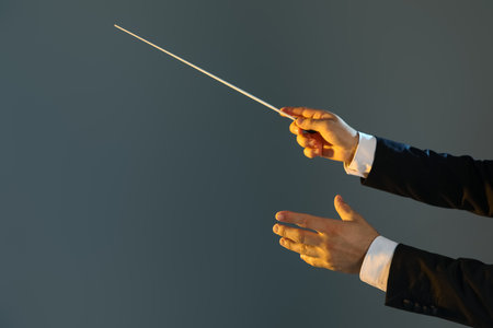 Orchestra conductor music conducting with baton Maestro hands with stick Symphony orchestra concert